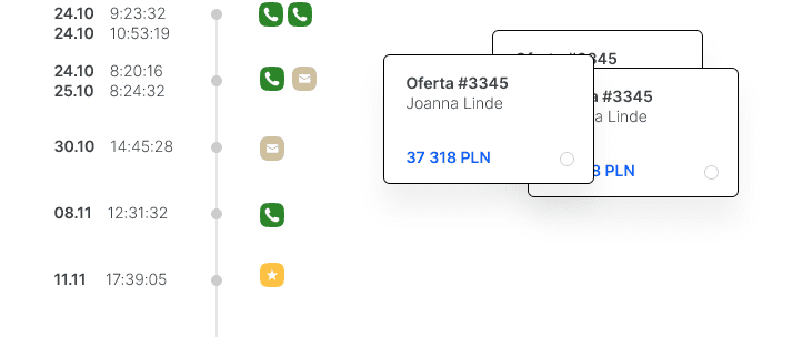 Wszystko co potrzebuje sprzedaż: baza klientów, wykonane telefony, wysłane oferty, zaplanowane spotkania i postępy sprzedaży są dostępne w jednym miejscu - w systemie CRM.
